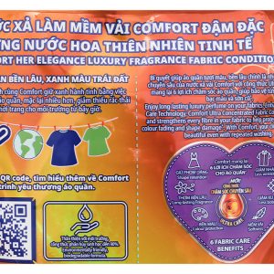 Là một thương hiệu nước xả vải rất được lòng các chị em nội trợ, nước xả Comfort với hương dễ chịu, giúp làm mềm vải hiệu quả, an toàn cho da và công thức xả đậm đặc tiết kiệm hơn. Nước xả vải Comfort hương nước hoa thiên nhiên tinh tế túi 1.8 lít hương thơm tự nhiên cực dễ chịu cho quần áo