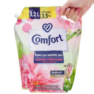 Nước xả vải Comfort lưu hương vườn xuân túi 3.1 lít với khả năng lưu hương sâu lên đến 100 giờ. Nước xả Comfort Vườn Xuân là dòng nước xả vải đậm đặc với công thức chăm sóc chuyên sâu Ultra Care giúp quần áo luôn tươi màu như mới.