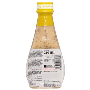 Nước chấm Kewpie là loại nước chấm sản xuất theo công nghệ Nhật Bản, phù hợp với khẩu vị người Việt. Nước xốt salad mè rang Kewpie chai 210ml với hương vị thơm đặc trưng của mè rang, rất phù hợp cho các món gà chiên giòn, gà hấp và các món gỏi trộn, salad.
