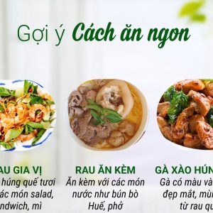 Rau húng quế có mùi hăng đậm, ngọt và mát. Kết hợp ăn rau khác nhau tương ứng với từng món ăn khác nhau làm gia tăng hương vị cho món ăn. Hoặc húng quế còn được sử dụng như một phương pháp điều trị bệnh: điều trị cảm mạo, ho, điều trị nhức đầu, cải thiện hệ thống miễn dịch, làm sạch răng,…