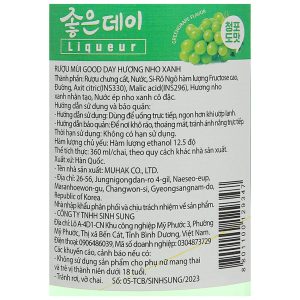 Rượu soju từ thương hiệu rượu Good Day sản xuất tại Hàn Quốc từ các thành phần tự nhiên. Rượu soju Good Day vị nho 12.5% 360ml cùng vị nho chua ngọt thanh mát, thơm quyến rũ giúp giải khát, cho những cuộc vui thêm sảng khoái bên cạnh đó còn mang lại nhiều lợi ích cho sức khỏe nếu dùng đúng cách