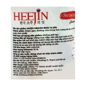 Rượu soju Heejin vị dâu 12% chai 360ml mang đến hương vị đặc trưng của dâu kết hợp với vị ngọt nhẹ của rượu Soju, tạo nên một trải nghiệm thú vị cho người thưởng thức. Với độ cồn 12%, đây là một lựa chọn phổ biến trong các buổi tiệc hoặc dịp sum họp.