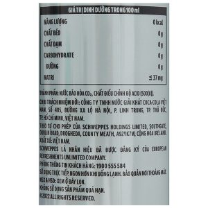 Nước ngọt sản xuất theo dây chuyền công nghệ hiện đại kiểm định nghiêm ngặt. Nước Soda Schweppes lon 320ml là thức uống giải khát giúp bổ sung vitamin và khoáng chất tốt cho cơ thể, giúp hanh chóng để bù nước cho cơ thể. Cam kết chất lượng an toàn từ thương hiệu nước ngọt Schweppes