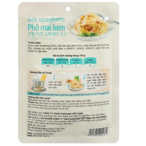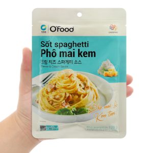 Sốt spaghetti O’food phô mai kem gói 120g là loại sốt gia vị mì Ý kết hợp giữa phô mai thượng hạng cùng kem tươi béo ngậy. Gia vị nêm sẵn O’food chỉ với chưa tới 10 phút chuẩn bị, bạn đã có ngay món ngon chuẩn vị: Mì Ý sốt kem nấm, mì Ý tôm sốt kem, cá hồi sốt kem,….