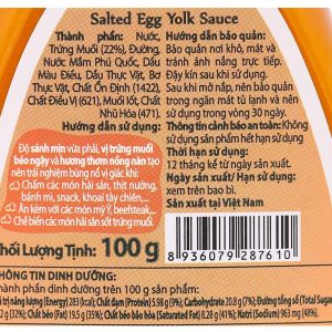 Sốt trứng muối Dh Foods chai 100g là sản phẩm nước sốt chấm với vị bùi bùi, béo ngậy của trứng muối, không chứa chất bảo quản, không màu tổng hợp. Nước chấm Dh Foods rất phù hợp để chấm cùng Thịt nướng, Hải sản, Snack, Mì Ý, Beefsteak,… hoặc chế biến các món Tôm/Cua sốt trứng muối.