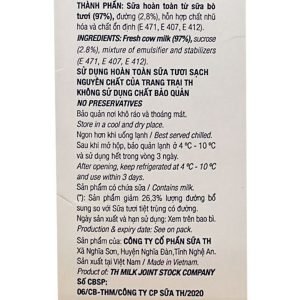 Sữa tươi TH True Milk không sử dụng thêm hương liệu, vị ngon 100% đến từ sữa tươi từ trang trại TH True Milk nên được các bà mẹ ưu tiên lựa chọn hàng đầu. Sữa tươi tiệt trùng ít đường TH true MILK hộp 1 lít đóng hộp lớn tiện lợi, tiết kiệm.