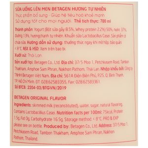 Sữa uống lên men hương tự nhiên Betagen chai 700ml