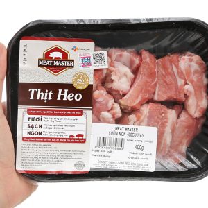 - Sườn non heo được đảm bảo nguồn gốc xuất xứ rõ ràng, nhập từ thương hiệu Meat Master.