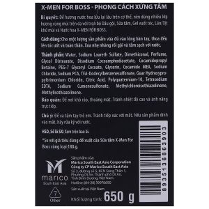 Là dòng sữa tắm gội cho nam giới đến từ thương hiệu dầu tắm gội X-Men của Việt Nam. Sản phẩm Tắm gội 2 in 1 X-men Boss Intense 650g tiện lợi, mang đến hương nước hoa, hương trầm dầy nội lực, giúp phái mạnh tự tin thể hiện phong thái chắc chắn, quyết đoán và kiên định của mình.