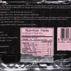 Là dạng viên thả lẩu đến từ nhà viên thả lẩu 3N Foods, thành phần gồm surimi từ thịt cá trắng, lòng trắng trứng,… tự nhiên. Thanh cua surimi vị cua 3N Foods gói 250g có thể dùng để làm món cơm chiên, mì xào, lẩu, sushi,…vô cùng thơm ngon