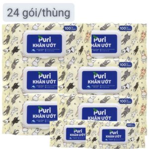 Thùng 24 gói khăn ướt Puri không mùi gói 100 miếng – giao màu ngẫu nhiên