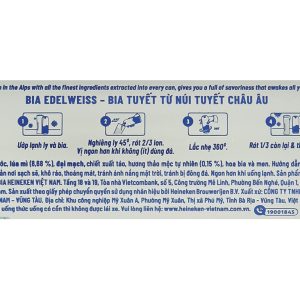 Bia tuyết thơm ngon làm từ lúa mì, đại mạch, thảo mộc thiên nhiên và nguồn nước tinh khiết tại những ngọn núi tuyết châu Âu. Thùng 24 lon bia tuyết Edelweiss 330ml chính hãng bia Edelweiss sở hữu công nghệ bia lâu đời từ năm 1646 mang đến hương vị bia thơm ngon hấp dẫn