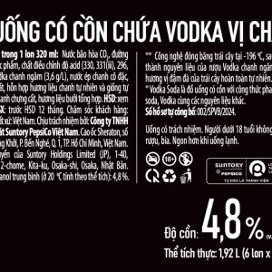 Thùng 24 lon Đồ uống có cồn -196 Vodka Soda vị chanh 320ml là đồ uống có cồn với công thức pha chế kết hợp soda, Vodka cùng các nguyên liệu khác. Công nghệ đóng băng trái cây tại -196 °C, sau đó nghiền thành nguyên liệu của rượu Vodka chanh ngâm để giữ lại hương vị đậm đà của trái cây hoàn toàn tự nhiên.