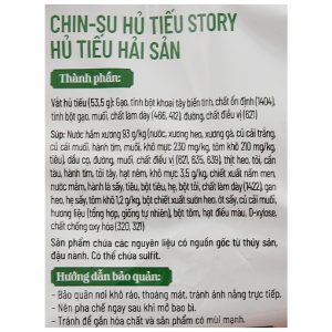Hủ hiếu ăn liền tiện lợi chính hãng hủ tiếu Chinsu uy tín trên thị trường. Hương vị thơm ngon, đặc trưng Thùng 30 gói hủ tiếu Mỹ Tho Chin-su Hủ tiếu story hải sản 77g dai ngon từng sợi hủ tiếu đặc sản, được tạo nên từ công thức bí truyền từ năm 1946 thơm phức tôm mực cho bạn món ngon hấp dẫn