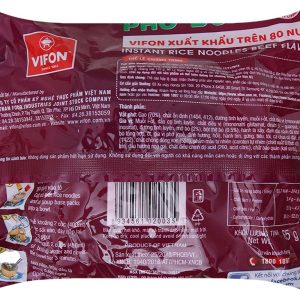 Sản phẩm phở ăn liền sản xuất theo công nghệ hiện đại dưới sự giám sát và kiểm tra nghiêm ngặt của các chuyên gia thực phẩm hàng đầu của Vifon, sản phẩm không chứa chất bảo quản, an toàn cho sức khỏe người tiêu dùng. 30 gói phở bò Vifon 65g lựa chọn hoàn hảo cho bữa ăn tiện lợi và dinh dưỡng