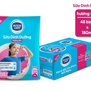 Thùng 48 bịch sữa dinh dưỡng hương dâu Dutch Lady 180ml