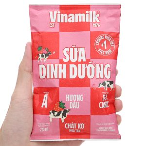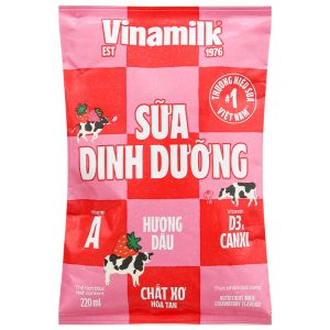 Được chế biến từ nguồn sữa tươi 100% chứa nhiều dưỡng chất như vitamin A, D3, canxi,… tốt cho xương và hệ miễn dịch. Sữa tươi Vinamilk là thương hiệu được tin dùng hàng đầu với chất lượng tuyệt vời. Thùng 48 bịch sữa dinh dưỡng hương dâu Vinamilk 220ml hương dâu dễ uống