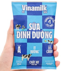Được chế biến từ nguồn sữa tươi 100% chứa nhiều dưỡng chất như vitamin A, D3, canxi, DHA,… tốt cho xương và hệ miễn dịch, sữa tươi Vinamilk là thương hiệu được tin dùng hàng đầu với chất lượng tuyệt vời. Thùng 48 bịch sữa dinh dưỡng ít đường Vinamilk 220ml thơm ngon dễ uống.
