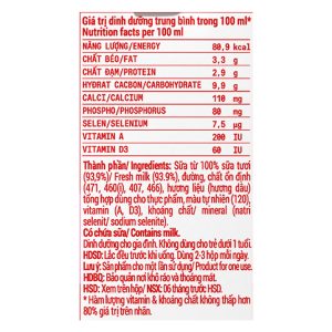 Được chế biến từ nguồn sữa tươi 100% chứa nhiều dưỡng chất như vitamin A, D3, canxi,… tốt cho xương và hệ miễn dịch. Sữa tươi Vinamilk là thương hiệu được tin dùng hàng đầu với chất lượng tuyệt vời. Thùng 48 hộp sữa tươi tiệt trùng hương dâu Vinamilk 100% Sữa Tươi 110ml hương dâu dễ uống