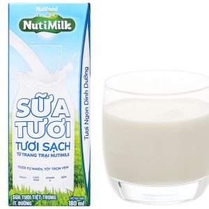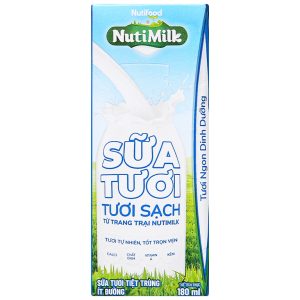 Thùng 48 hộp sữa tươi tiệt trùng Nutimilk tươi sạch ít đường 180ml được sản xuất hoàn toàn từ sữa tươi sạch của trang trại bò sữa NutiMilk đạt chuẩn Global Gap. Sữa tươi NutiMilk dùng cho trẻ từ 1 tuổi trở lên, cùng cấp dưỡng chất cần thiết cho sự phát triển của cơ thể.