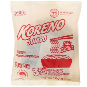 Mì Koreno là dòng sản phẩm mì ăn liền có xuất xứ từ xứ sở kim chi. Túi 10 gói mì Koreno Jumbo vị bò cay 100g sản xuất theo công nghệ Hàn Quốc, giúp sợi mì mềm, dai hòa quyện cùng hương vị bò cay, sự tinh tế trong từng sợi mì mang đến trải nghiệm không thể nào quên.