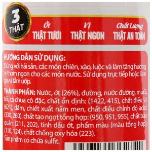 Được chế biến từ tỏi, ớt nguyên chất, có hương vị đặc biệt thơm ngon, màu sắc bắt mắt đến từ tương ớt Nam Dương. Tương ớt Nam Dương cay đặc biệt chai 255g với màu đỏ của tương ớt tự nhiên mịn màng, mùi thơm dịu độc đáo và hương vị cay ngon hấp dẫn, tuyệt đối không sử dụng vị cay nhân tạo.