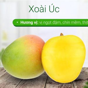 - Xoài Úc của được trồng tại tỉnh Nha Trang. Xoài Úc thường được ăn khi sống hoặc khi vừa chín tới. Trái chín chuyển màu vàng hoặc điểm đỏ sáng, mùi rất thơm, trái bắt đầu mềm. Xoài khi ăn sống có vị chua, ngọt nhẹ pha lẫn. Xoài khi chín có vị ngọt đậm, mùi hương rất thơm.