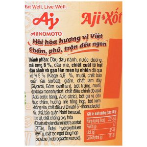 Xốt mè rang Aji Xốt Ajinomoto chai 235g là sản phẩm nước xốt chấm kết hợp hoàn hảo hương vị đậm đà của hạt mè rang cùng các nguyên liệu như giấm gạo và cốt nước tương lên men. Nước chấm Ajinomoto sử dụng nguồn nguyên liệu tuyển chọn kĩ lưỡng và kiểm tra chất lượng nghiêm ngặt, đảm bảo an toàn cho người tiêu dùng.