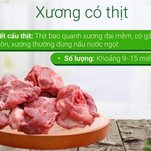 Xương heo có thịt là phần xương heo được lấy từ nhiều bộ phận khác nhau của con heo như xương ống, xương giá, xương đuôi heo. Mặc dù được lấy từ nhiều bộ phận khác nhau, nhưng sản phẩm vẫn mang đến hương vị ngon ngọt, những phần thịt tươi xen lẫn với những khúc xương làm tăng độ ngọt tự nhiên cho món ăn. Đặc biệt, các chất dinh dưỡng trong xương khi hầm đủ lâu rất tốt cho sức khoẻ nên ngoài thịt heo, xương heo được người tiêu dùng vô cùng yêu thích tại đấy nhé!